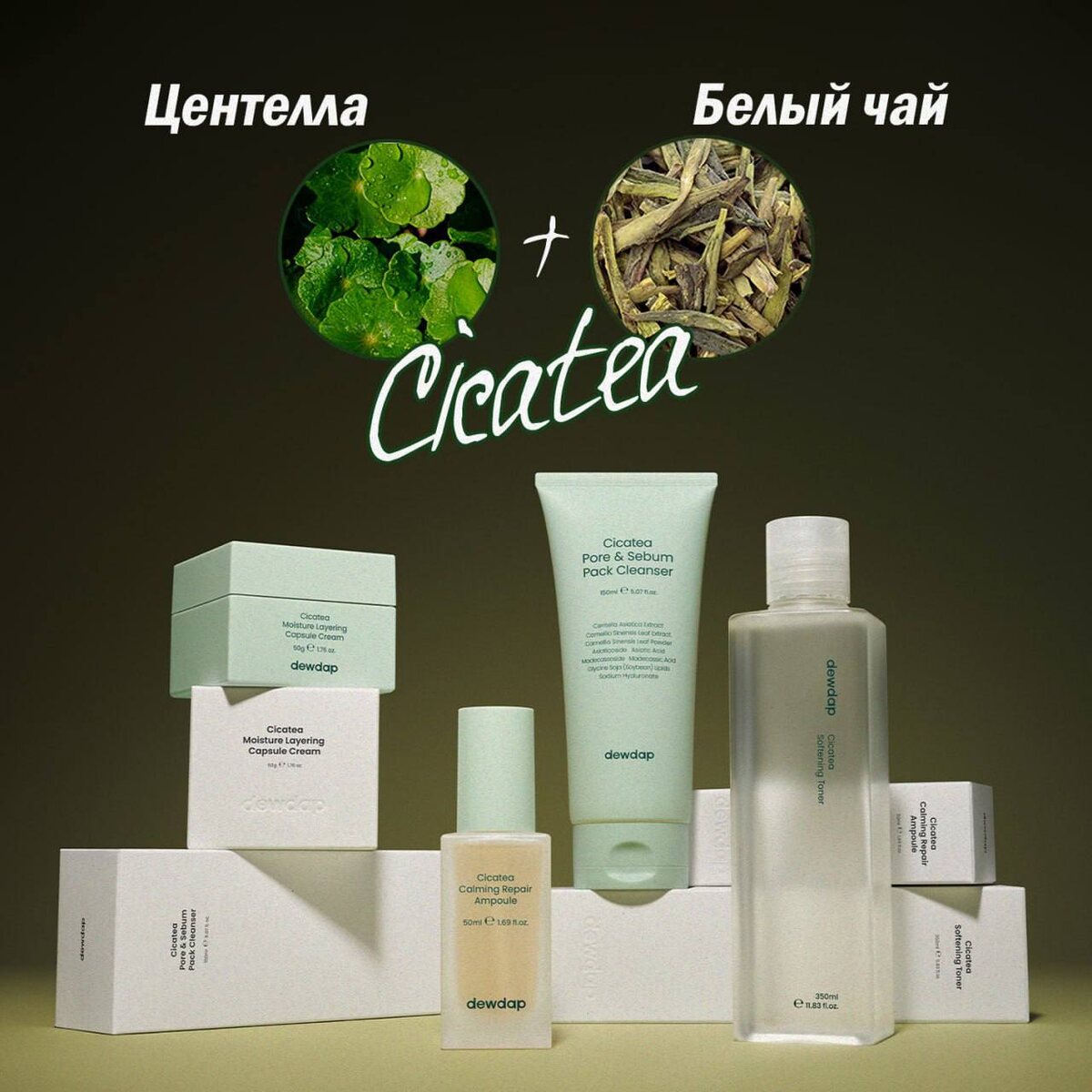 🌿 Представляем вам запатентованный компонент CICATEA, созданный брендом Dewdap! ✨Что особенного в нём? ✔️ CICATEA – настоящий чемпион среди успокаивающих ингредиентов. Его сила превосходит легендарные центеллу азиатскую и белый чай аж в целых четыре раза! ❄️После первого применения ваша кожа получит заряд увлажнения больше чем на 70% и мгновенно почувствует себя спокойнее на 89%. Это подтверждают исследования, проведённые специалистами Dewdap . ❄️Благодаря инновационному экологичному методу производства «Eco Attack», при создании компонента используется только вода и давление, никаких нагревов ⭐Если ваша кожа склонна к раздражениям и требует особого ухода, выбирайте продукцию Dewdap с CICATEA – она сделает вашу кожу мягкой, нежной, тон лица ровным, сузит поры и позитивно повлияет на себорегуляцию 😍 Настоящая находка для любителей центеллы, но в более мощном и функциональном исполнении ❤