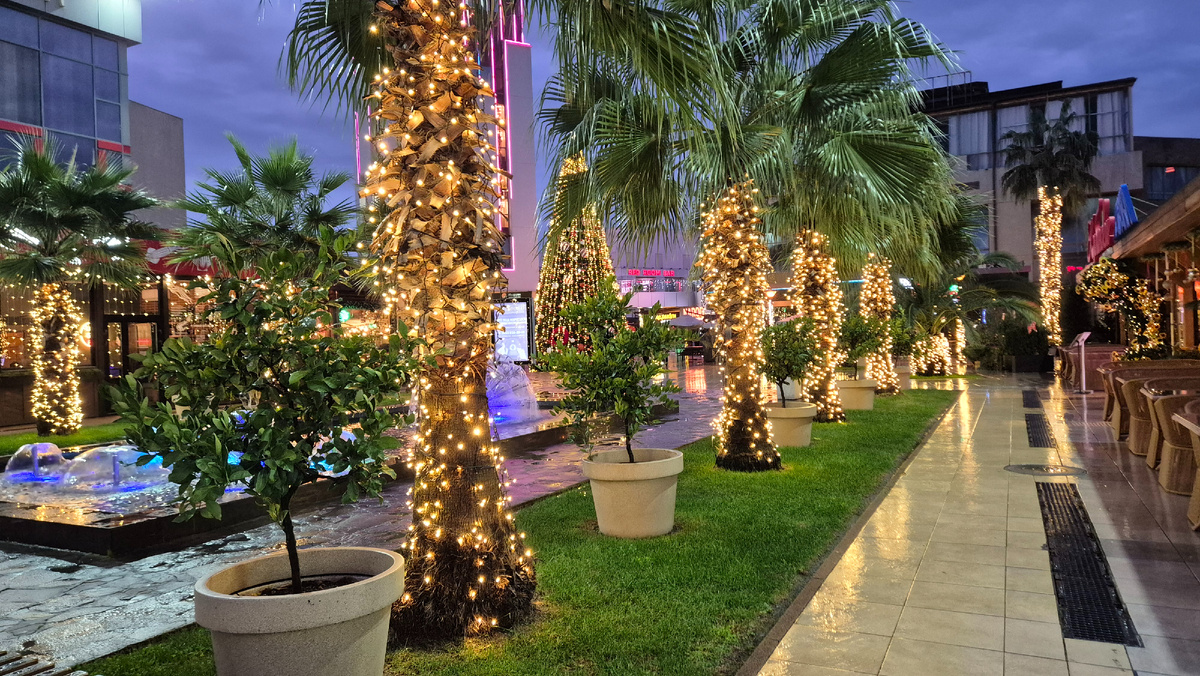 В Сириусе и Сочи - субтропический климат. Ели не растут из-за теплой зимы. Но у нас не переживают по этому поводу. Кедры гималайские с легкостью создают ощущение хвойной сказки. Зато возможностей для украшения к Новому Году намного больше!) Крепкие пальмы вашингтонии, финик канарский, китайские веерные пальмы... Они становятся нашими новогодними деревьями! Искусственные ели, конечно, также создают ощущение праздника и новогоднее настроение! Гулять в тени украшенных к Новому Году пальм в России - это необычные эмоции и удивление! Гирлянды создают свою уникальную атмосферу! Новый Год, конечно, ассоциируется со снегом и настоящей зимой. К примеру, климат в Сириусе по данным на 2025 год: Синоптики, конечно, каждый январь-февраль очень хотят, чтобы зима была "настоящей" и по поводу любого похолодания сразу включают излишний эмоциональный накал. Но снег у нас реально возможен. И это настоящий праздник для детей. Ведь следующие несколько лет снега они могут во дворе своего дома не увидеть.