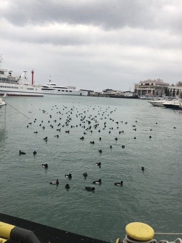 У птиц нет границ, как это здорово! Вот сейчас в Сочи на зимовке –хохлатая чернеть, птица семейства утиных, широко распространённая на территории Евразии. Мы называем проще-утка. Зимой они сбиваются в стаи, а их внешний вид очень привлекателен. Большинство из них черные с белоснежно- белыми боками. Много их в сочинском морском порту, знают где ими любуются. Отдыхающие подкармливают их хлебушком. В этом вопросе у людей разное мнение. Одни считают, что кормить не стоит, и я тоже с этим согласна, потому что в воде, а они хорошо ныряют, много моллюсков, личинок насекомых, мелкой рыбы. Ведь утки питаются в основном кормом животного происхождения. Если его мало, то они переходят на растительную пищу. Водные растения используются в качестве добавки к животному корму. А хлеб – не самый полезный для них вариант, но они ловят, конечно, деликатес и любят. Хохлатая утка - это перелетная птица. Здесь у нас она находится на зимовке. И как раз в это время образует семейные пары. Весной утки улета