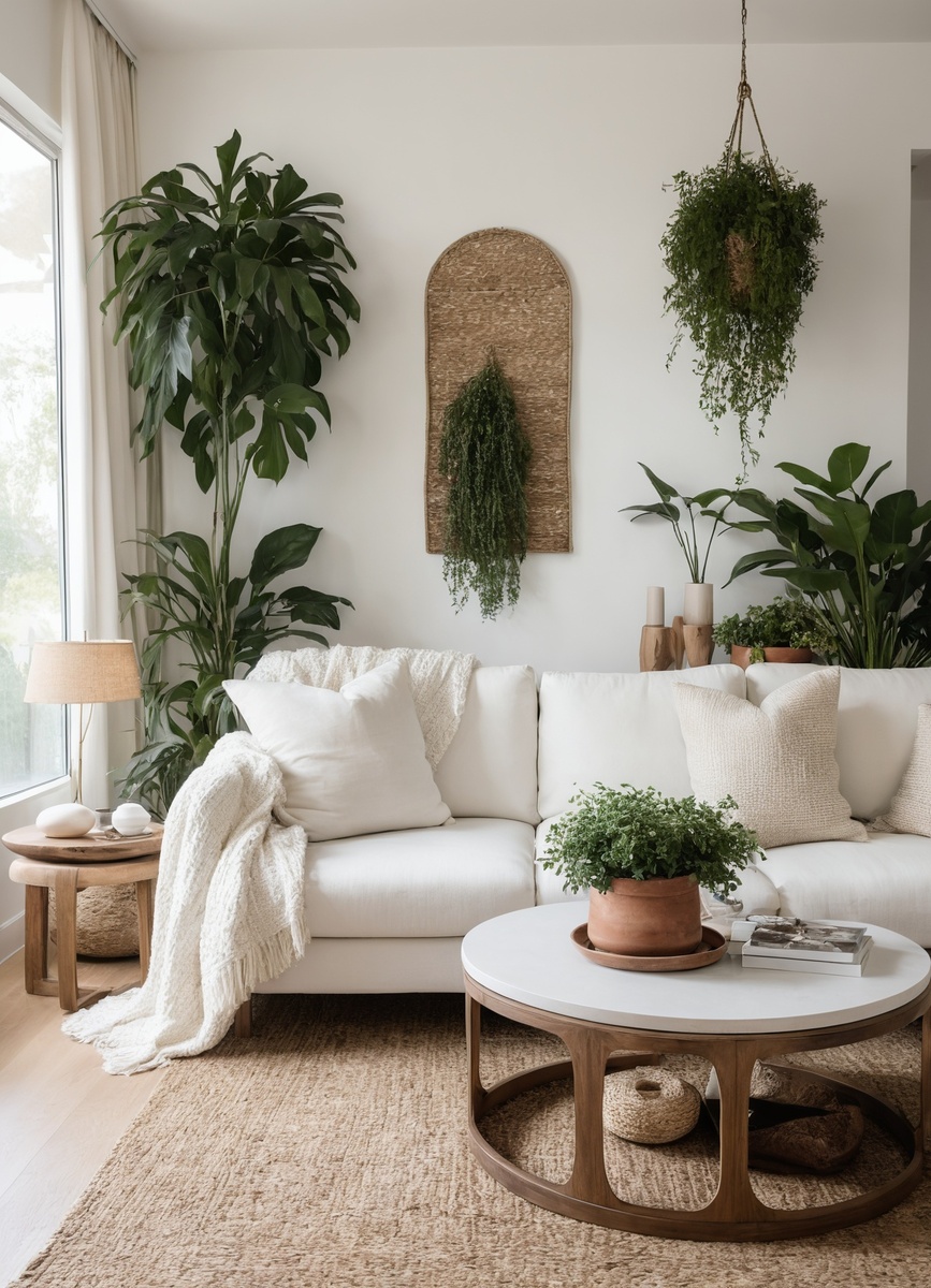 Растения могут служить не только акцентами, но и функциональными элементами декора. Например, вертикальные сады или подвесные кашпо помогут сэкономить пространство и в то же время украсить стены. Выбор правильных горшков и ваз также играет важную роль - натуральные материалы, такие как керамика или дерево, отлично комбинируются с белыми поверхностями. Таким образом, зелень становится неотъемлемой частью дизайна, смягчая резкость белого цвета и создавая гармоничное пространство.
