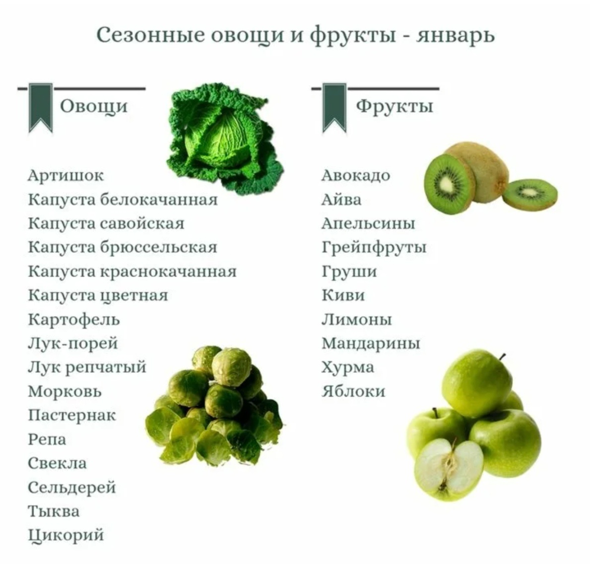 Здравствуйте, дорогие друзья! В январе особенно важно не только насладиться вкусными блюдами, но и укрепить иммунитет и общее состояние здоровья. Сезонные продукты в этот период особенно ценны, вкусны и легко доступны. Много полезной информации, общаемся и задаем вопросы здесь 💪 Почему стоит выбирать сезонные овощи и фрукты? Овощи и фрукты, выращенные в открытом грунте, обладают высокой концентрацией витаминов и минералов. Их производство не требует сложной логистики и длительного хранения, что позволяет чаще употреблять их свежими. В январе на прилавках обычно можно найти корнеплоды, различные виды капусты и цитрусовые, которые прекрасно подходят для приготовления питательных и согревающих блюд. 🥔 Овощи, доступные в январе, — ключевой ингредиент для приготовления питательных и вкусных блюд. 1. Разнообразная капуста. В январе капуста занимает центральное место на столе. Речь идет не только о привычной белокочанной, но и о брюссельской, цветной, пекинской (китайской) капусте. Эти овощ