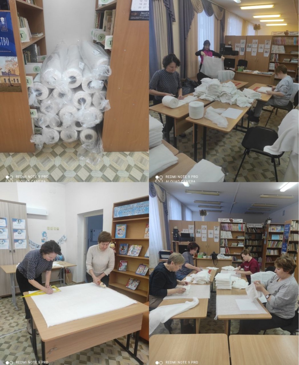 : Говорят, под Новый год, что не пожелается, всё всегда произойдёт, всё всегда сбывается! Нам очень хотелось найти спонсора на приобретение марли и ваты для изготовление перевязочного материала необходимого госпиталю Ростова-на-Дону. Обратились за помощью вновь к нашему доброму другу и помощнику Сергею Николаевичу Богатыреву, и его подписчикам, которые однажды уже помогли нам в приобретении промышленной распрошивальной машины. Хотя надежды были невелики, спустя всего две недели, накануне праздника, мы получили чудесный подарок: фонд «Всеединство» прислал 75 тысяч рублей, благодаря которым удалось приобрести целых 17 рулонов медицинской марли. Гузелия Усимова из чата "Таволга" выделили на приобретение 30 килограммов ваты 17 тысяч 200 рублей. Ну, разве это не чудеса?!! Несмотря на праздничные дни и долгожданные каникулы, педагоги нашей школы продолжали активно помогать госпиталю. Каждый день они приходили в здание школы, чтобы подготовить материал для пошива ватно-марлевых п