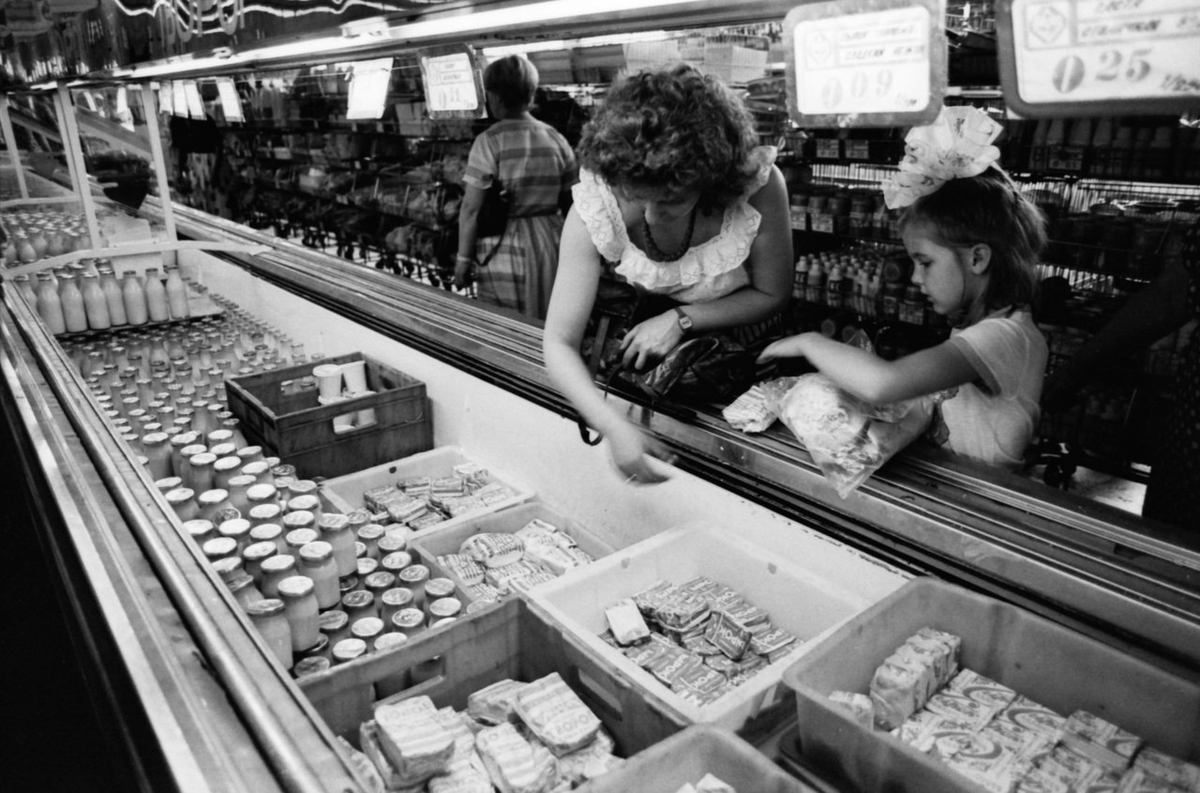 Советские магазины предлагали продукты по фиксированным государственным ценам, доступным каждому. Литр молока стоил 28 копеек, буханка черного хлеба — 16 копеек, а килограмм говядины — около 2 рублей. На среднюю зарплату в 150 рублей рабочий мог купить более 400 литров молока или 75 килограммов мяса. Семья из четырех человек тратила на питание всего 50-60 рублей в месяц, что составляло треть дохода.