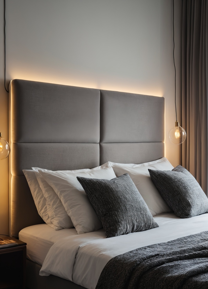 Изголовье кровати можно выделить с помощью интересного освещения. Настенные светильники или бра, установленные по бокам, создадут уютный световой акцент, придавая комнате атмосферу романтики. Также можно использовать светодиодные ленты, которые подчеркнут линии изголовья и добавят современный штрих. Важно выбрать мягкие, теплые оттенки света, чтобы создать расслабляющую обстановку.