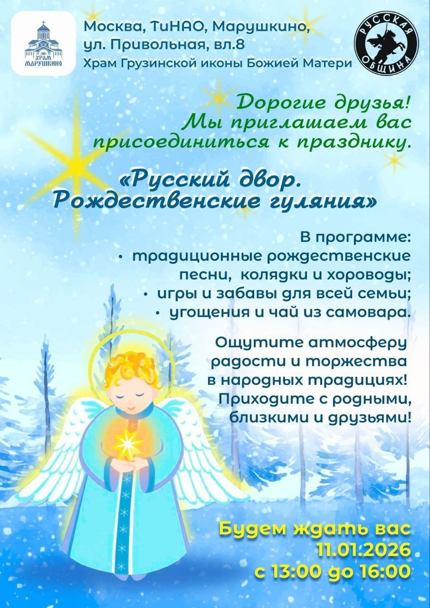 🎇Храм Грузинской иконы Божией Матери в Марушкине приглашает на Рождественские гуляния 11 января 13-16:00