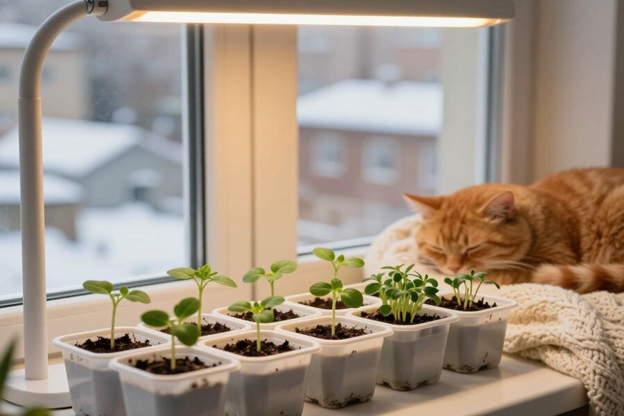 Предупреждаем сразу: без двух условий сеять в январе бессмысленно. Это досвечивание (12-14 часов в день) и стабильное тепло (+18...+25°C). Без фитолампы или светодиодных панелей на подоконнике рассада вытянется и погибнет. Для тепла используют мини-теплички, греющие коврики или ставят емкости ближе к батарее (но не пересушивая!).