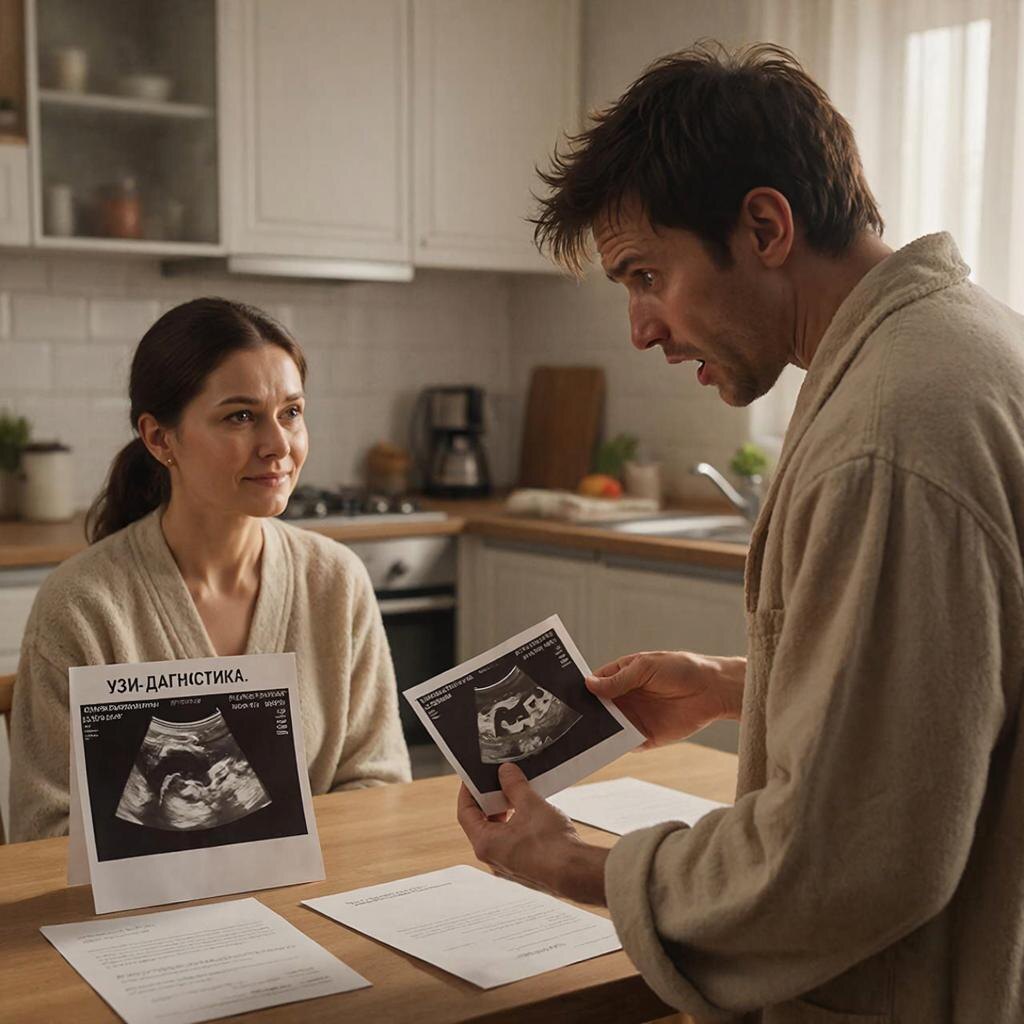 Максим вошел в халате, потирая глаза. Увидел документы и снимок УЗИ одновременно.