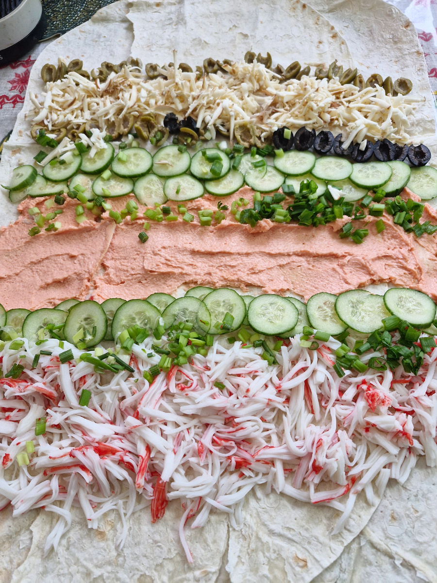 А я заглянула в холодильник, собрала все, что было и решила сделать рулет.