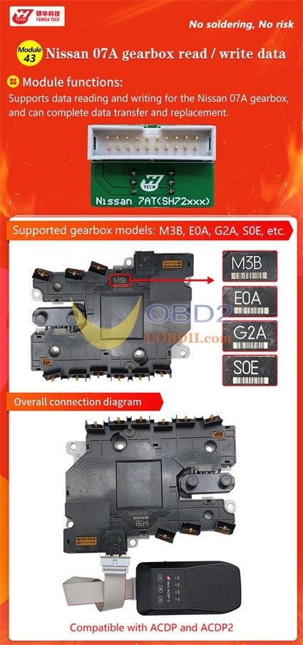 📰 UOBDII Official Blog Для чтения и записи данных в коробке передач Nissan 07A (M3B, E0A, G2A, S0E) с помощью Yanhua ACDP2 требуется модуль Yanhua Module 43. Необходимо запустить программное обеспечение ACDP-II, убедиться, что устройство ACDP подключено, выбрать соответствующие параметры для работы с данными, проверить подключение, считать данные MAPS, затем записать их в новую коробку передач, используя файл резервной копии оригинальной коробки. 🔗 Читать полностью #новости #автодиагностика #автоключи #canbus #nissan #obd2 #tcm