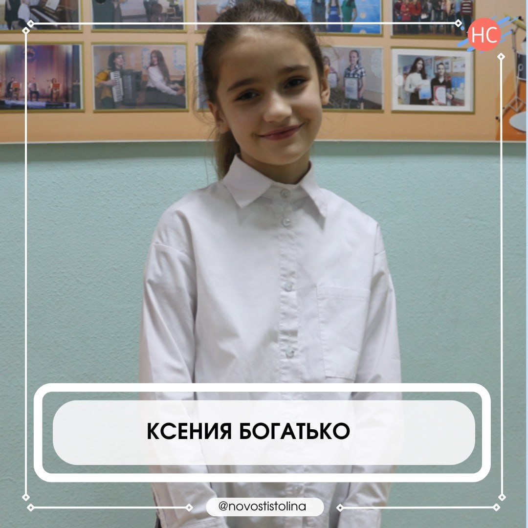 п. Речица. Не раз приходилось наблюдать за этой очаровательной девчонкой во время общешкольных мероприятий и концертных программ. Ксюшка выделяется в детском коллективе своей открытостью, отзывчивостью, доброжелательностью, коммуникабельностью. Она всегда с улыбкой, никогда не пройдёт мимо, чтобы не спросить, как дела. 🔵Ксюша учится в 5 классе СШ № 3 р. п. Речица. Среди школьных предметов выделяет русский язык и литературу, английский язык, историю. Любит рисовать, петь и играть на фортепиано. Это увлечение привело её в Речицкую ДШИ, где успешно занимается уже три года. Талантливая девочка – постоянная участница многих творческих мероприятий и конкурсных программ. 🔵К вокалу у неё особое отношение благодаря учителю Ольге Мельник, что поспособствовало увлечённостью выступлениями в составе детского хора. У Ксюшки много друзей. Её позитив и энергичность помогают ей в общении. С подружками всегда весело проводит время, любит гулять. А ещё с радостью помогает родителям. В её обязаннос