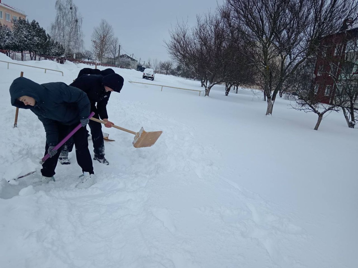 ФОТОФАКТ. После уроков сменили умственный труд на физический учащиеся СШ №3 им. Героя Советского Союза А.Г. Корзуна