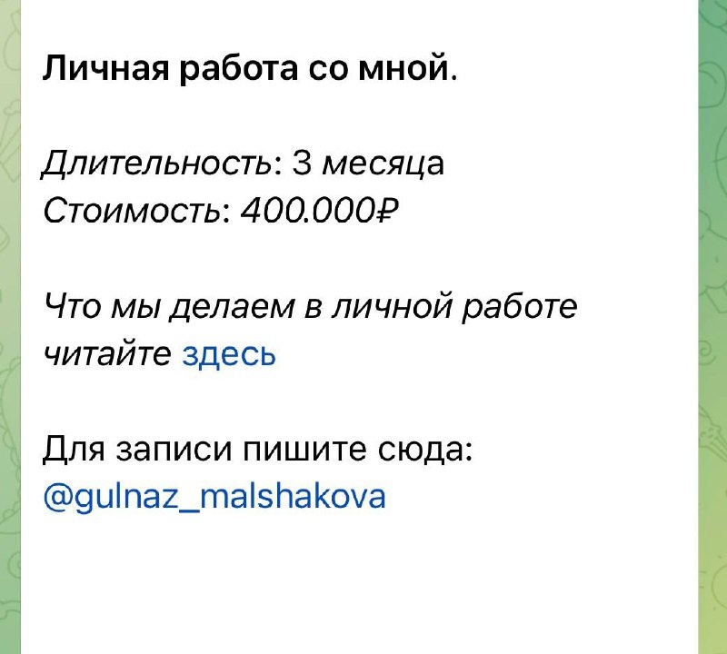 Я увеличила срок сопровождения до 3 месяцев. Это идеальное время, чтобы навык трансформаций не просто попробовать, а действительно встроить в жизнь. Чтобы изменения стали естественными, устойчивыми и вашими. Личная работа - это глубокое погружение. Мы не чинем симптомы, а выстраиваем новое мышление, новое состояние и другую внутреннюю опору. Вы учитесь самостоятельно работать с установками, страхами, виной, напряжением и возвращаться в ресурс в любой точке жизни. Этот формат для тех, кто: • готов к настоящим изменениям • хочет быстро расти без надрыва • ценит индивидуальный подход и глубину Если чувствуете отклик, значит это про вас. Подробнее здесь Для записи пишите: @gulnaz_malshakova 💎
