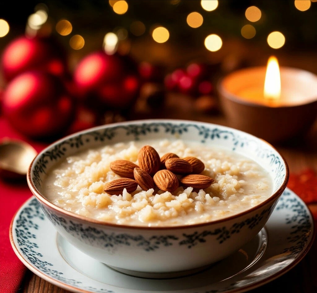 🎄 Почему рождественское? Традиционная рождественская каша из риса,которую едят на завтрак в Сочельник. В неё прячут один миндальный орех. Тот, кто его найдёт, будет счастлив в новом году и, по поверью, вступит в брак. Каша символизирует надежду, начало праздничного дня, семейное единство и весёлую игру.