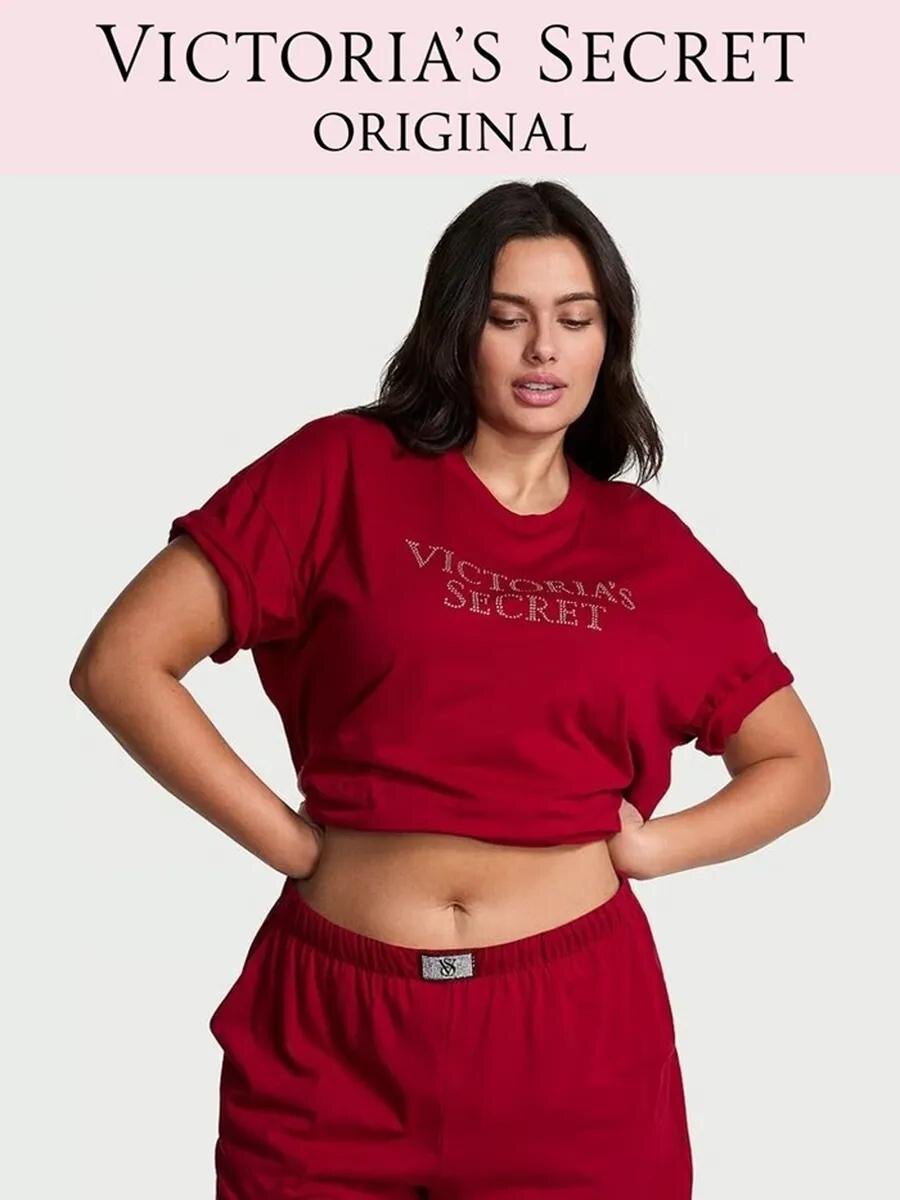 Пижама Victorias Secret S бордовая футболка с логотипом из страз и шорты с лого-нашивкой 100 Cotton Shine Short Pajama Set