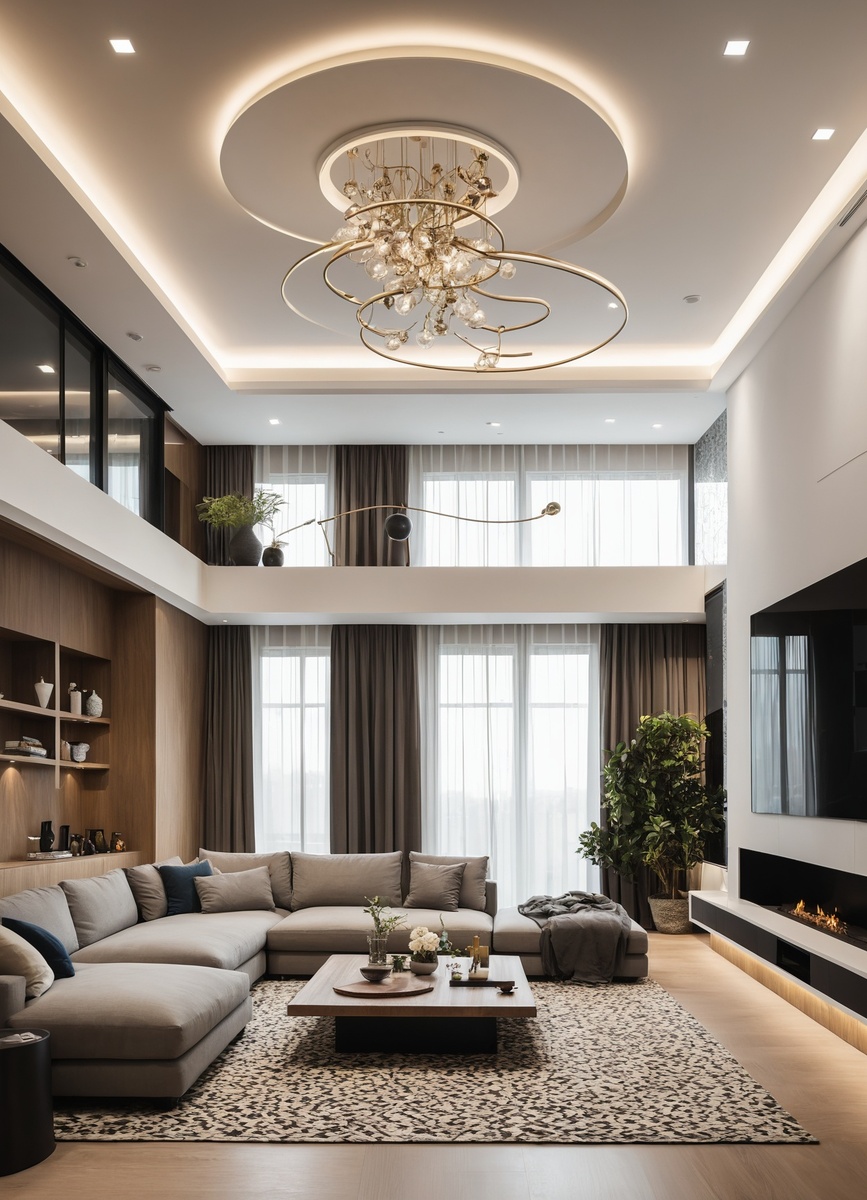 Стили интерьера, такие как минимализм, скандинавский и индустриальный, влияют на выбор потолка в гостиной. Для минималистичного интерьера подойдут плоские потолки с сдержанной цветовой гаммой и гладкой поверхностью. Они создают ощущение простора и легкости. В то же время, многоуровневые потолки хорошо вписываются в более сложные стили, такие как барокко или арт-деко, позволяя выделить зоны и добавить выразительности, используя контрастные текстуры и цвета.