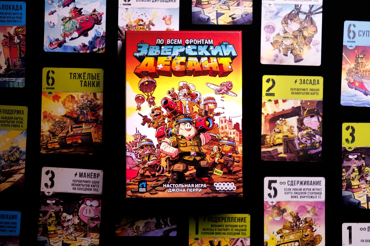 Я вам уже рассказывал про игру «По всем фронтам» в прошлой подборке и вот неожиданно для меня Hobby Games выпустила её рескин с антропоморфными животными в духе Metal Slug. Механически не изменилось вообще ничего, та же самая игра, просто классно проиллюстрирована. Взял не раздумывая. Много в нее наигрываем с Даником, особенно, когда времени не много. Иногда у него очень даже крутые ходы рождаются. Быстро и тактически интересно. В таком исполнении дважды рекомендую.