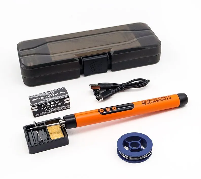 Некоторое время назад был куплен аккумуляторный паяльник, продавался он в кейсе, с наполнением, припой, канифоль, дополнительные жала, провод для зарядки и подставка. Всё бы ничего, но в ложку мёда всегда добавят бочку дёгтя. Начать с того что канифоль в качестве флюса это вчерашний день. А учитывая что мощность паяльника не столь большая, то лудить провода становится очень не комфортно. Подставка выглядит вроде неплохо, но откидная скоба обратно возвращаться не желает, а с откинутой скобой кейс не закрывается. Провод для зарядки имеет стандартный разъем и подходит от большинства телефонов, да и короткий он. И что особенно не нравится, чтоб поместить паяльник в кейс, необходимо вынуть жало, иначе не помещается. Как говорится "Такой хоккей нам ненужен". Печатаем свой кейс с необходимым наполнением, а именно, паяльник со вставленным в него жалом, шприц и пастообразным флюсом, другую подставку, припой и футляр со сменными жалами. Чтоб не спутать его с другими кейсами, добавляем соответст