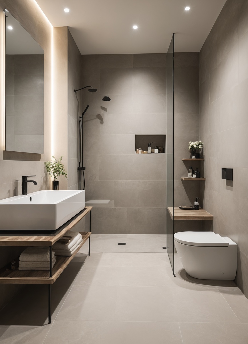 Стеклянная плитка становится все более популярной благодаря своей эстетике и возможности визуально расширить пространство. Она может быть использована как в качестве основного покрытия, так и в виде акцентов. Однако стекло требует более тщательного ухода и может быть подвержено царапинам. Выбор между керамикой, porcelain stoneware и стеклом должен основываться на ваших предпочтениях, функциональности и стилевом решении ванной комнаты.