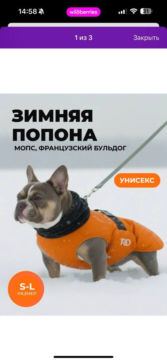 Не помню, писала ли тут, но недавно мне подарили щенка амбулли. Такая себе помесь таксы с крокодилом, очень очаровательная девочка и зовут её Вафля. Вафля гладкошерстная, соответственно зимой ей нужна одежда. Зашла я на ВБ, быстро выбрала попону, времени нет всё это высматривать тщательно. Взяла две на примерку: одна с нейросетевой фоткой, так как оранжевый цвет понравился. Одну с реальной съёмкой. И что вы думаете? Нейросетевая просто ожидание/ реальность. Другой цвет, другая ткань, другое качество, другие швы, нет отстрочки, подкладка черная. Теперь пролистываю такие фото, ищу только живые снимки товара.