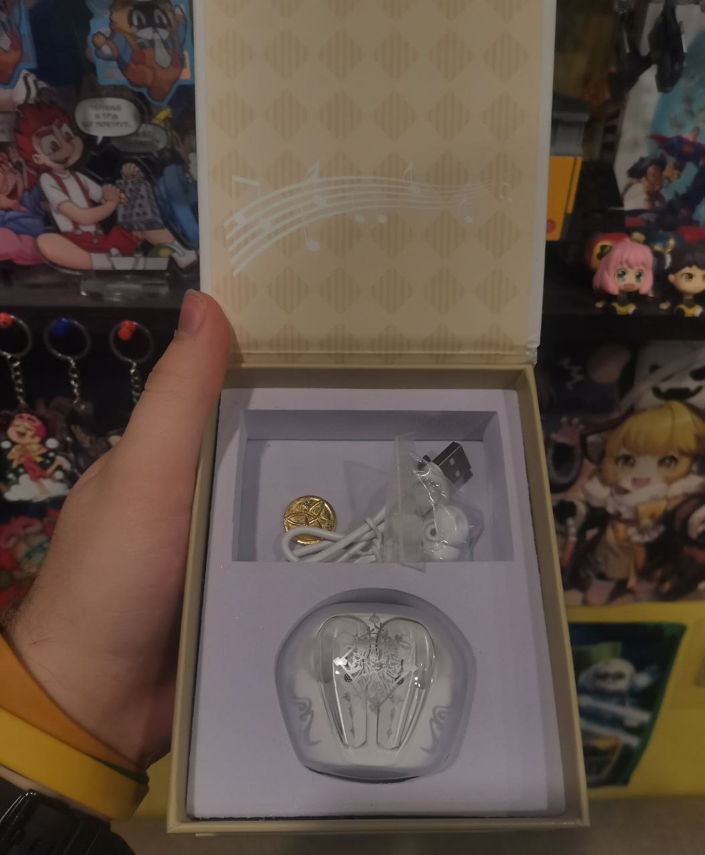 😩 Решил обновить наушники на НГ. И давно заприметил эту красоту! Это наушники в стилистике Ху Тао 🍋, отличительная их черта (кроме дизайна) это полна озвучка фраз голосом самой Ху Тао. 🔥 Выключение/Включение, Подключение/Отключение и снижение уровня заряда - это всё озвучено индивидуальными фразами и озвучкой! И это действительно не просто очередной фан на дизайнерскую вещь, которая хороша только на вид. Нет, это не так.❌ Эти наушники действительно хороши, звук хороший, громкий и четкий, на зарядку тоже не жалуюсь. Да и тем более в подарок к ним накинули кучу всякого! Стикеры, закладка, ламинированная наклейка, значки и монетка моры. Всё качествнно и красиво. 😍 Если вас они вдруг тоже зацепили то вот вам Артикул WB (напоминаю, что это все ещё не реклама и мне не заплатили...к сожалению): 281001097 Кстати там не только Ху Тао есть, там множество персов из Геншина. Может и своего любимца найдёте. 😈