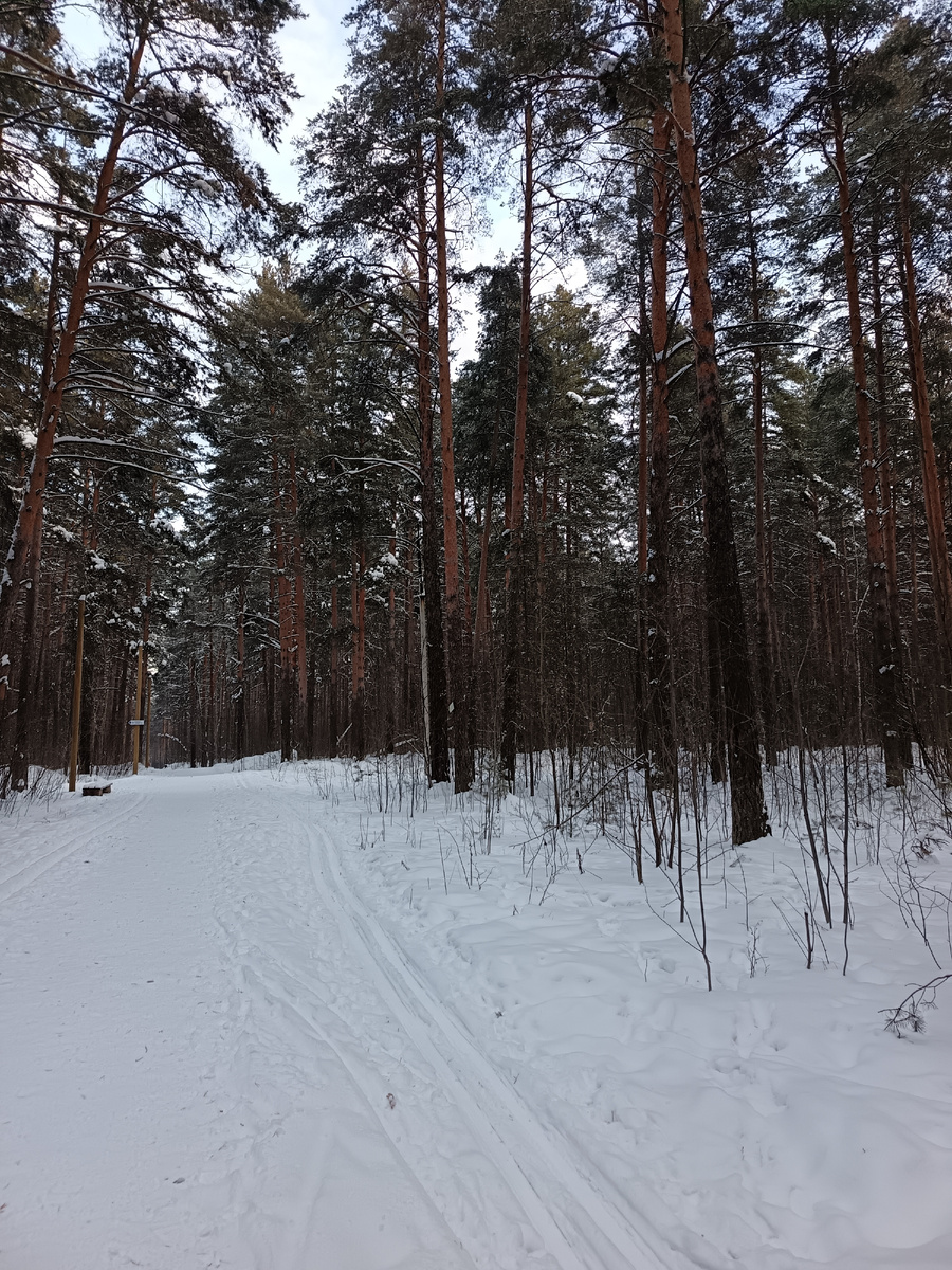 В лесу многолюдно: кто - то на лыжах уже рассекает, кто-то парами идут, разговаривают.