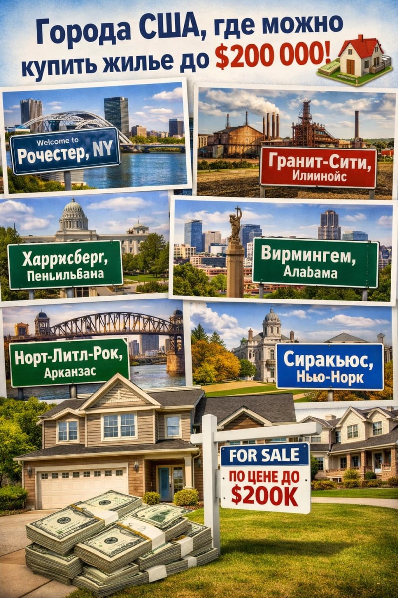 жилья по стране более $400 тысяч. 🏡 Рочестер (штат Нью-Йорк) - $139 900 🏡 Харрисберг (Пенсильвания) - $151 999 🏡 Гранит-Сити (Иллинойс) - $119 000 🏡 Бирмингем (Алабама) - $148 950 🏡 Норт-Литл-Рок (Арканзас) - $170 000 🏡 Сиракьюс (штат Нью-Йорк) - $169 900 🏡 Гарфилд-Хайтс (Огайо) - $140 000 Наличие программ поддержки покупателей первого жилья может сделать покупку ещё выгоднее. Например, в Гранит-Сити при получении ипотеки ипотечные выплаты составят всего 12,6% от цены дома.