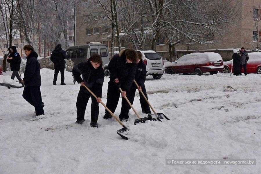 В Гомеле волонтёры Новобелицкого района помогают в уборке снега