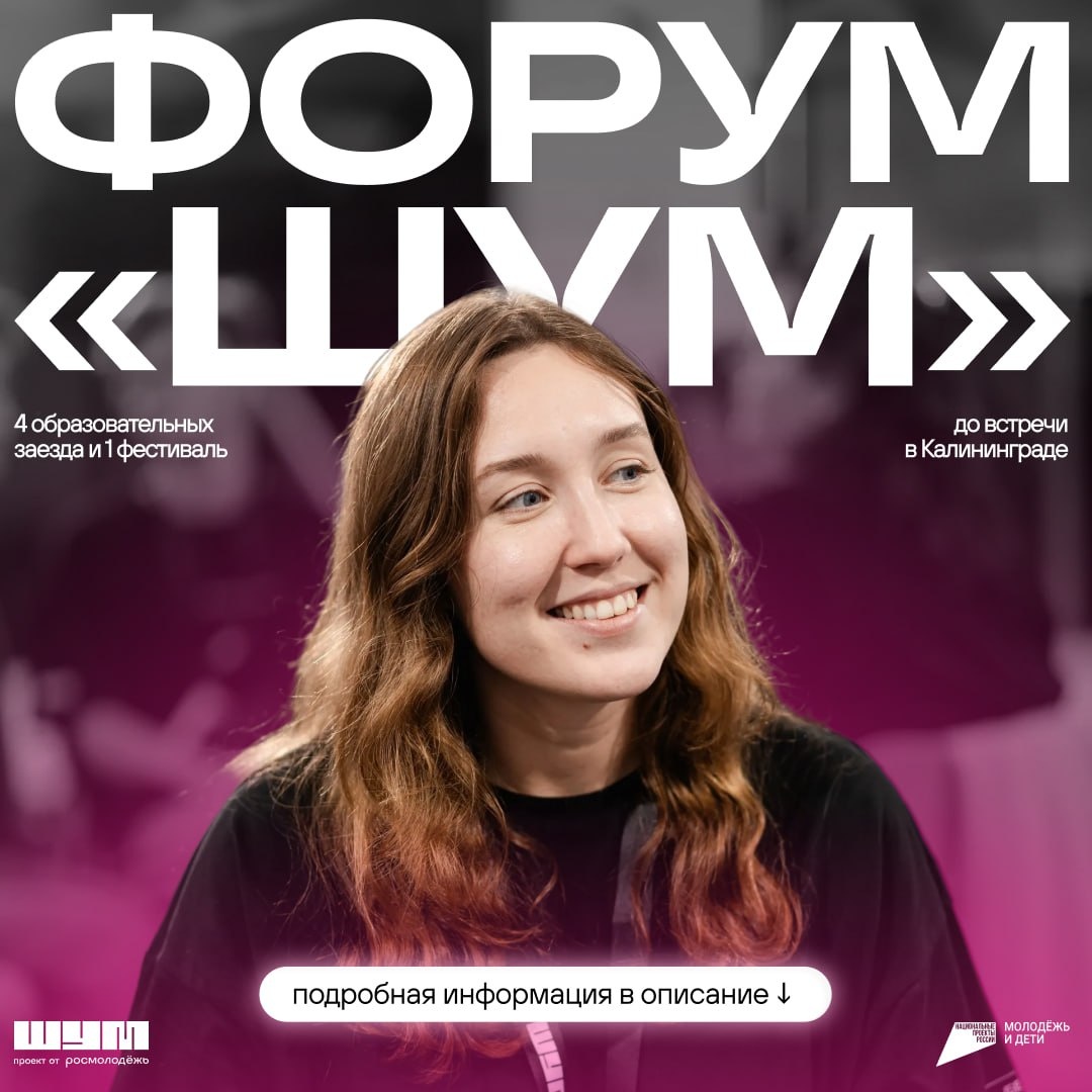 Сейчас самое время подумать над заявкой для участия в Форуме «ШУМ». Этим летом форум будет отмечать 5️⃣ лет – этот год точно станет особенным для участников! 📎 Ты можешь выбрать один из пяти заездов: — «ШУМ.Производство» (с 10 по 14 июня) — «ШУМ.Города» (с 16 по 20 июня) — «ШУМ.Журналистика» (с 24 по 28 июня) — «ШУМ.Поколение» (с 30 июня по 4 июля) — «ШУМ.Фестиваль» (с 9 по 13 июля) ❗️Сделай первый шаг к своей мечте в новом году, и пусть 2026 станет для тебя периодом непрерывного роста. Форум реализуется при поддержке национального проекта «Молодёжь и дети». #molod29 #молод29 #ЦентрШУМ #нацпроекты #молодежьидети #Росмолодёжь