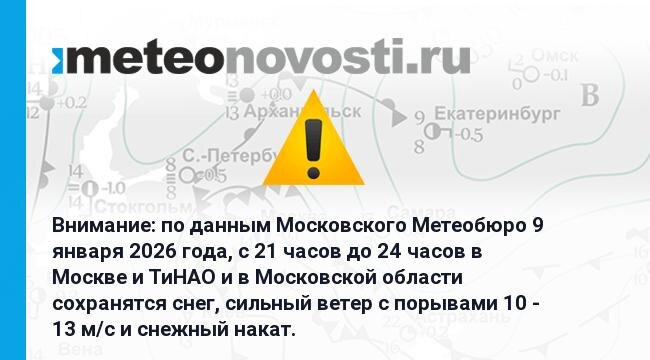 Внимание: по данным Московского Метеобюро 9 января 2026 года, с 21 часов до 24 часов в Москве и ТиНАО и в Московской области сохранятся