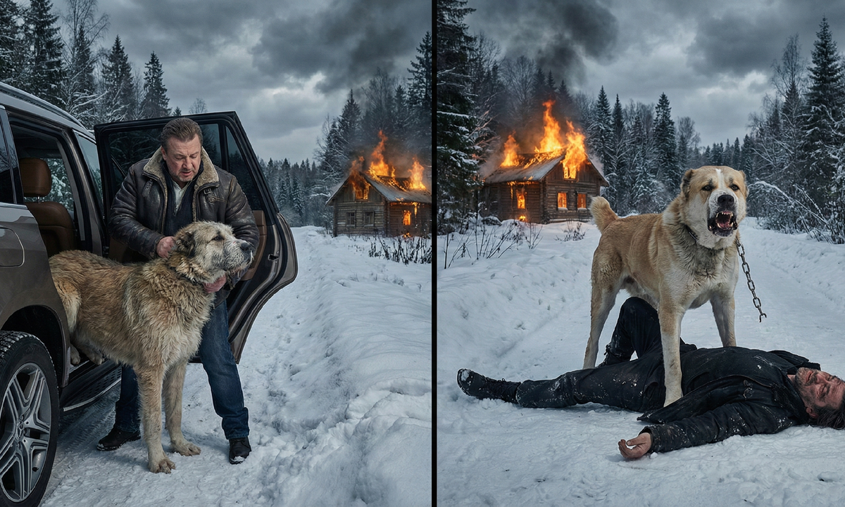 Картина была сюрреалистичной. На фоне горящей стены и падающего снега огромный белый алабай держал в осаде взрослого мужика на капоте покосившегося дорогого внедорожника.