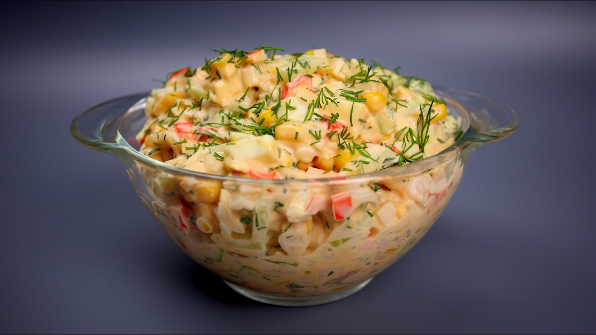 Приветствую вас, друзья. Сегодня готовим салат с крабовыми палочками, но не совсем обычный. Всё дело в заправке. Она меняет привычный вкус, делает его более глубоким и интересным. Попробуем? Начнем с яиц. Чтобы они чистились легко и желток не темнел, есть простая хитрость. Берем нужное количество яиц прямо из холодильника и сразу же опускаем в кипящую подсоленную воду. Варим ровно 10 минут с момента закипания, а затем сразу перекладываем в миску с очень холодной водой, а лучше — со льдом. Из-за перепада температур между скорлупой и белком образуется прослойка, и скорлупа снимается буквально сама. Оставляем их остывать. Пока яйца отдыхают, нарезаем 200 граммов крабовых палочек небольшим кубиком. Кстати, если у вас их нет под рукой, отлично подойдет отварное или запеченное филе куриной грудки, нежирной рыбы (например, минтая), или даже креветки. Отправляем нарезку в миску, в которой будем собирать салат. Теперь вернемся к яйцам. Остыли? Чистим. Скорлупа действительно должна отходить хоро