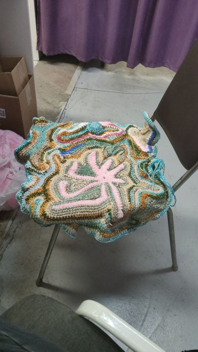 Вяжу накидушку для стула на роботе, потому что он кожаный и холодно сидеть