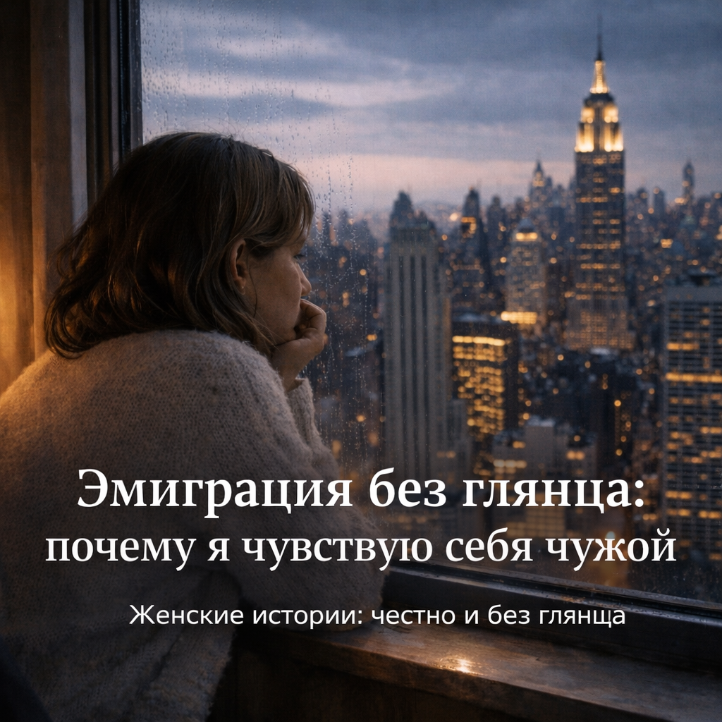 Это еще одна из женских историй, честно и без глянца. Я уехала 2 года назад. Без истерик. Потому что сама так хотела. Я всем говорила, что это мой выбор. И, если честно, я до сих пор так думаю. Я живу в другой стране, но всё время чувствую себя чужой. Я стою в магазине и долго выбираю хлеб, потому что не понимаю, какой «обычный». Я каждый раз напрягаюсь, когда нужно что-то спросить. Заранее репетирую фразы в голове и всё равно чувствую себя неловко. Я улыбаюсь чуть больше, чем нужно. Говорю осторожно. Стараюсь не быть «неудобной». У нашла работу, не такую как хотела, но деньги на основные расходы есть. Нашла новых знакомых. Но все равно нет ощущения, что я на своём месте. Я всё время как будто в гостях. Даже в квартире, в которой я живу. Я не покупаю вещи «надолго». Не вешаю картины. Только основные нужные в хозяйстве вещи. Живу с мыслью, что это всё временно. Я часто вспоминаю свою прошлую жизнь. Не потому что там было лучше. А потому что там я была собой. Там я не думала, как звучит