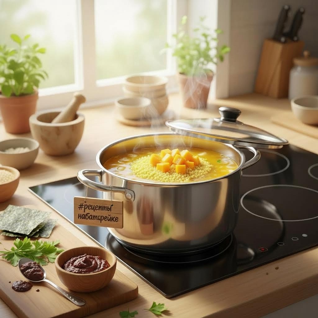 Так на питание смотрит аюрведа с высоты времён со всеми своими тремя дошами. Макробиотка туда же, только через инь и ян. Сегодня давайте сварим простой суп из пшена и тыквы. Согласно макробиотике, каждый ингредиент в супе обладает либо женской энергией (холодной) — инь, либо мужской (горячей) — ян. Чтобы создать баланс, нам с вами сейчас больше ян нужен. Поэтому выбираем продукты ян и применяем техники приготовления, усиливающие ян-энергию. Мисо-суп с пшеном и тыквой ½ стакана пшена ½ стакана корня сельдерея, нарезанного кубиками (если есть) 1 стакан нарезанного репчатого лука 1 стакан тыквы, нарезанной кубиками 1 л горячей воды 1¼–1½ ст. л. мисо рубленая петрушка — для подачи можно добавить водоросли нори или вакааме (если вдруг завалялись на кухне) *Соль в конце по вкусу (не забываем, что паста мисо солёная) Пшено тщательно промыть и слегка обжарить на сухой сковороде. (Усиливаем ян.) В кастрюлю выкладываем овощи слоями: сначала корень сельдерея, затем лук, сверху — тыкву. На