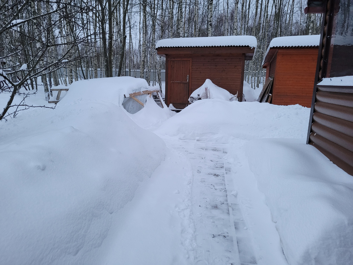 Мужчины наши четыре раза в день чистили дорожки.
