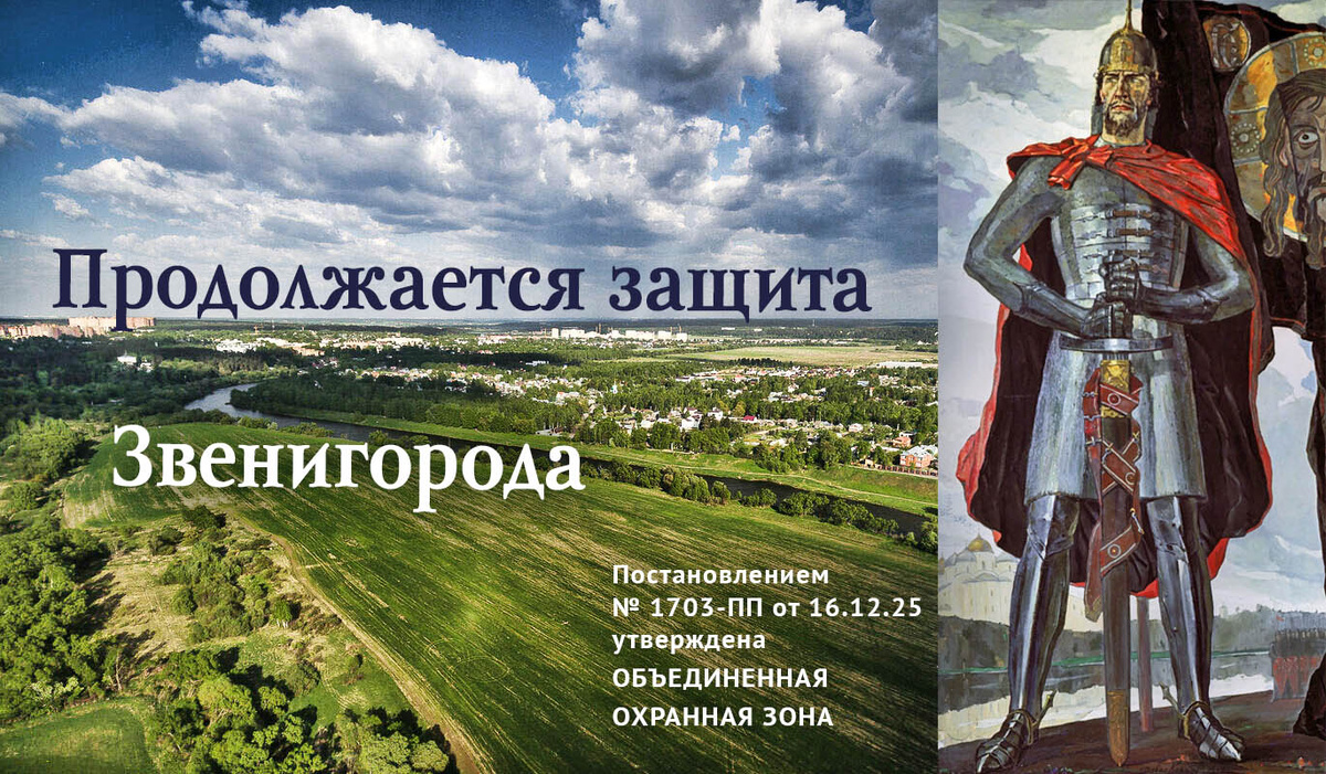 16 декабря 2025 года было подписано Постановление Правительства МО, утвердившее проект объединенной охранной зоны объектов культурного наследия Звенигорода. Поставлена точка в 32-летней эпопее придания охранного статуса бесценным сокровищам Звенигородской земли. Учитывая, что этот проект – четвертый по счету, до последнего не верилось, что он приобретет-таки силу закона, а не канет в бюрократических лабиринтах подобно трем его предшественникам. После того как прошла первая эйфория от публикации Постановления №1703-ПП, появилась возможность проанализировать историю проекта.