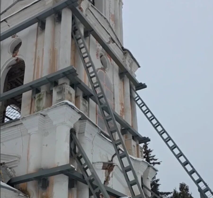 На колокольне установлены контрафорсы - поддерживающие элементы, защищающие постройку от обрушения. Также проведены работы по укреплению фундамента храма. Второй этап восстановления будет включать в себя противокарстовые мероприятия. Для этого понадобится поддержка федерального бюджета - соответствующие заявки уже поданы в федеральное Министерство культуры. Работы по восстановлению храма продлятся до 2027 года. В текущем году перекрытие улицы Смоленской сохранится.