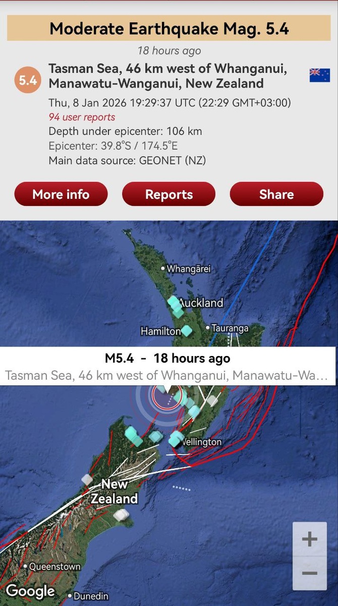 Отработка тектонического напряжения по Новой Зеландии затянулась на 2+ недели