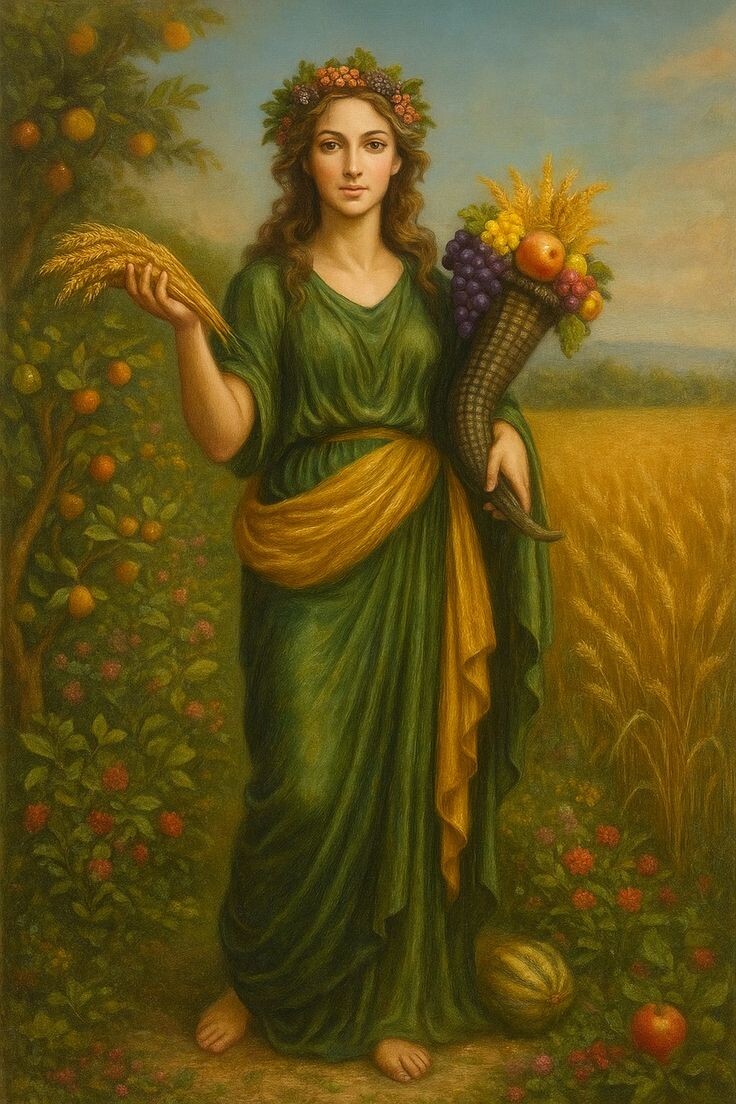 Деметра прекрасного облика, с волосами цвета спелой пшеницы.