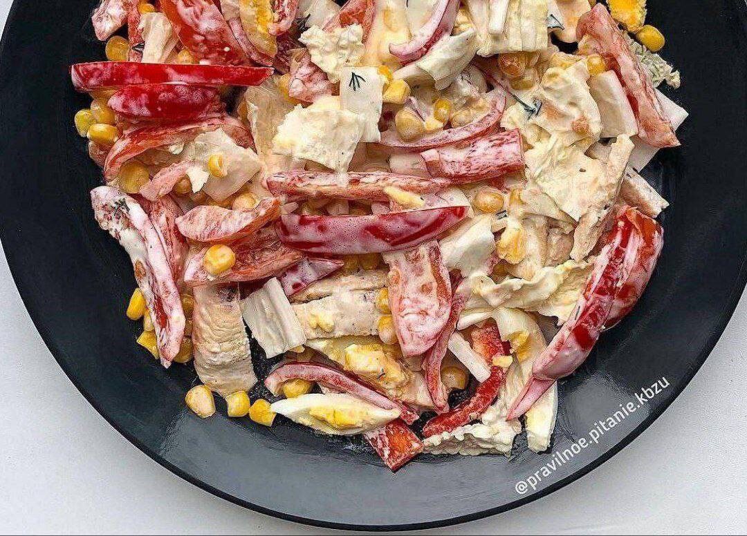 Рецепт. ВКУСНЫЙ И ПРОСТОЙ САЛАТ🍅 ⠀ 📝Ингредиенты: ▪️Помидор ▪️Варёное яйцо ▪️Кукуруза ▪️Филе курицы или индейки ▪️Красный болгарский перец ▪️Пекинская капуста ▪️Зелень по желанию ▪️Сметана для заправки ▪️Соль по вкусу Курицу приготовить любимым способом,все что режется нарезать,посолить и заправить сметаной. #коломнарецепт