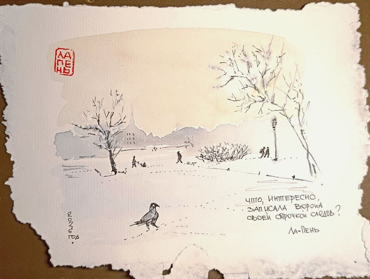 Записала ворона Своей строчкой следов? Ла-Пень.