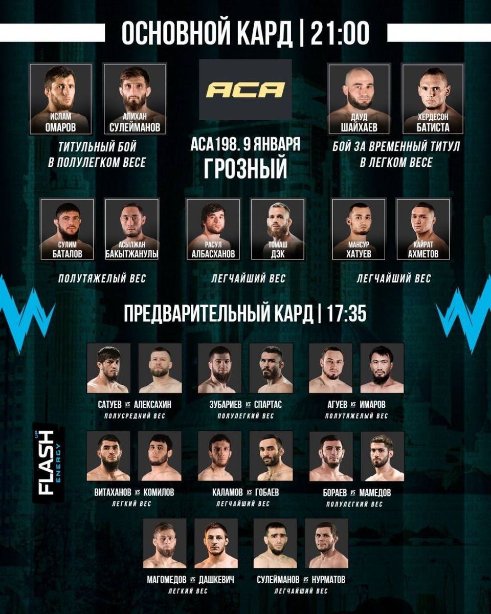 📺 Титульный реванш Омарова и Сулейманова и трилогия Шайхаев – Батиста за пояс: онлайн турнира ACA 198