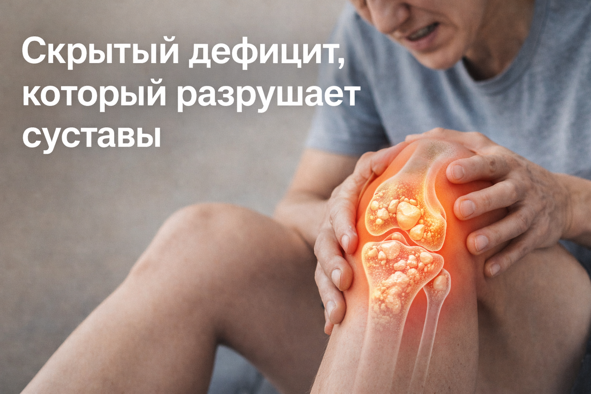 Боли в суставах стали нормой? Хруст при ходьбе, утреннее ощущение скованности или «ломота на погоду»? Многие списывают это на возраст, артроз или просто «так у всех». Но мало кто знает: часто за этим стоит скрытый дефицит, который не покажет обычный анализ крови. Речь пойдёт не про глюкозамин или хондроитин. И даже не про коллаген. Главный разрушитель суставов при недостатке — витамин K2, особенно его форма МК-7. И вот почему. Мы привыкли считать витамин K чем-то, что связано только со свёртыванием крови. Это верно — но только для витамина K1. А вот витамин K2 (менахинон) — это совсем другой механизм. K2 управляет тем, куда организм откладывает кальций. При его недостатке кальций начинает скапливаться не в костях, а в мягких тканях — в том числе в суставах и хрящах. Что это вызывает: А теперь главное: при дефиците K2 кальций становится вредным — он откладывается там, где не должен, провоцируя воспаления и разрушение тканей. В организме есть два ключевых белка, которые зависят от витами