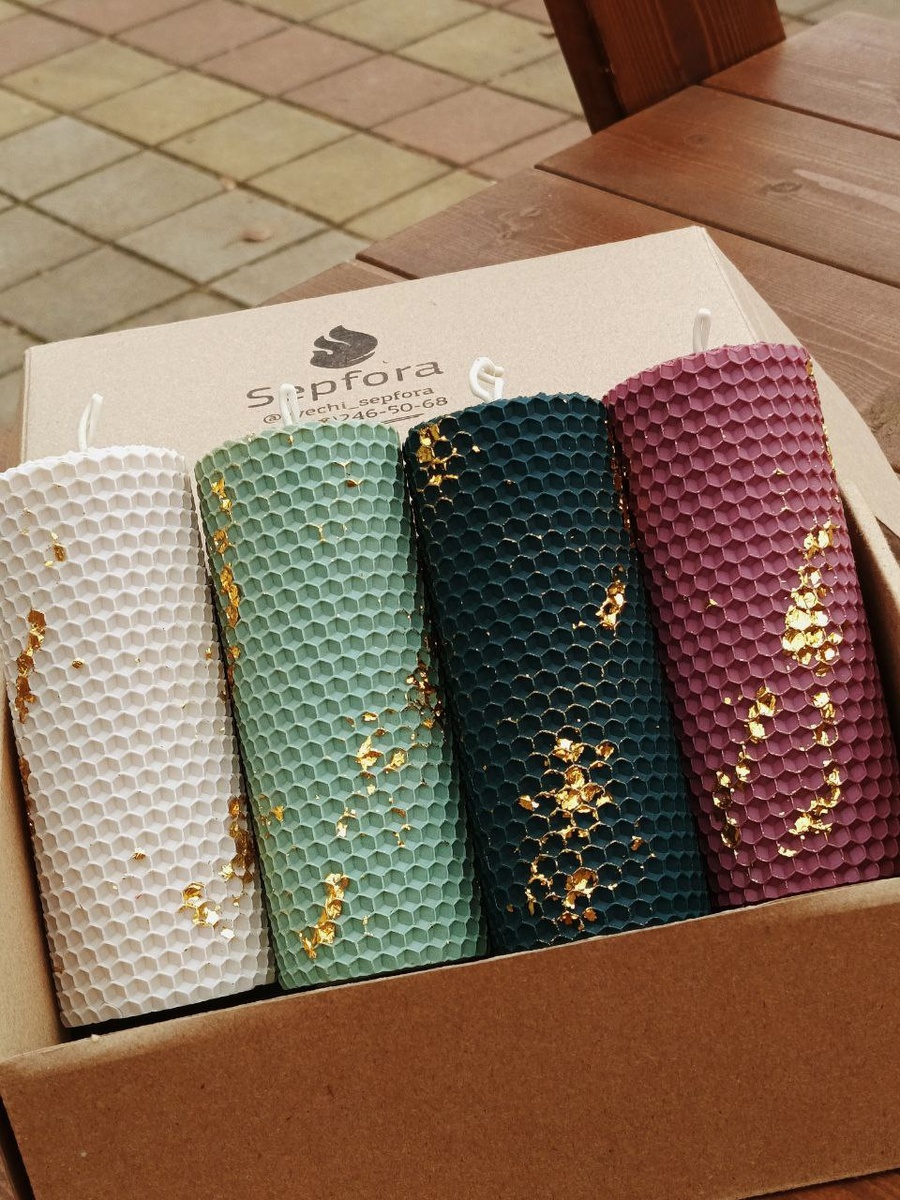 " Размер 13 * 5 см М Стоимость 300 руб. При правильном использовании общее время горения такой свечи не менее 4-5 час ( не забывайте про правило не жечь свечу из вощины более часа - полутора подряд⚡) Поталь используемая для декора придаёт свечам более изысканный вид. При этом сама свеча при использовании остаётся максимально экологически чистым продуктом. Вощина, котрую я использую для изготовления свечей - не содержит искусственных примесей. Изготовлена по ГОСТУ. Термическая обработка при высоких температурах изготовления , что носит в том числе антибактериальный эффект. Продукт сертифицирован и проверен временем👌 Да! свечи из вощины при горении выделяют фитонциды — вещества растительного происхождения, которые уничтожают вирусы, грибки и бактерии. Таким образом, свечи из вощины очищают воздух в помещении от вредных микроорганизмов, стимулируют имунную систему, а ещё... регулярное использование свечей из вощины благоприятно действует на нервную систему, обладая успокаивающим действ