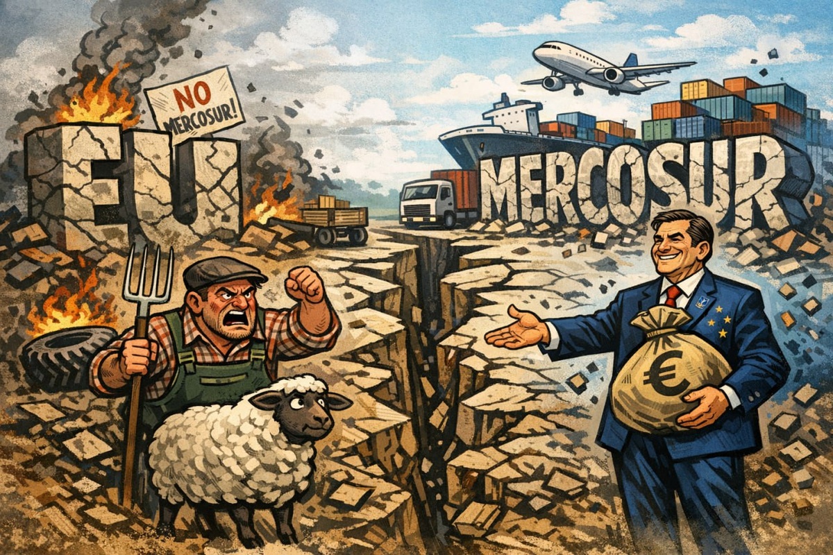 внешнеторговую модель объединения. Сегодня может быть поставлена точка в затянувшемся споре о торговом соглашении с Mercosur. ➡️В случае заключения европейский рынок будет открыт для дешёвой южноамериканской продукции, произведённой по более мягким стандартам. Для фермеров ЕС это означает падение конкурентоспособности, снижение доходов и прямые риски для продовольственной безопасности. ❌ В 2023 году документ так и не был подписан - его остановили фермерские протесты и жёсткая позиция стран-блокаторов. Теперь предпринимается вторая попытка, уже в менее заметном режиме: расчёт делается на международную турбулентность, смещение общественного внимания и усталость европейских обществ от череды кризисов. Текущая попытка продвинуть соглашение также сопровождается мощной волной фермерских протестов - от Парижа до Варшавы и Аттики. Наиболее масштабные акции прошли во Франции и Бельгии, где переросли в блокировки ключевых транспортных артерий и логистических узлов. ⭕️Несмотря на это, подписани