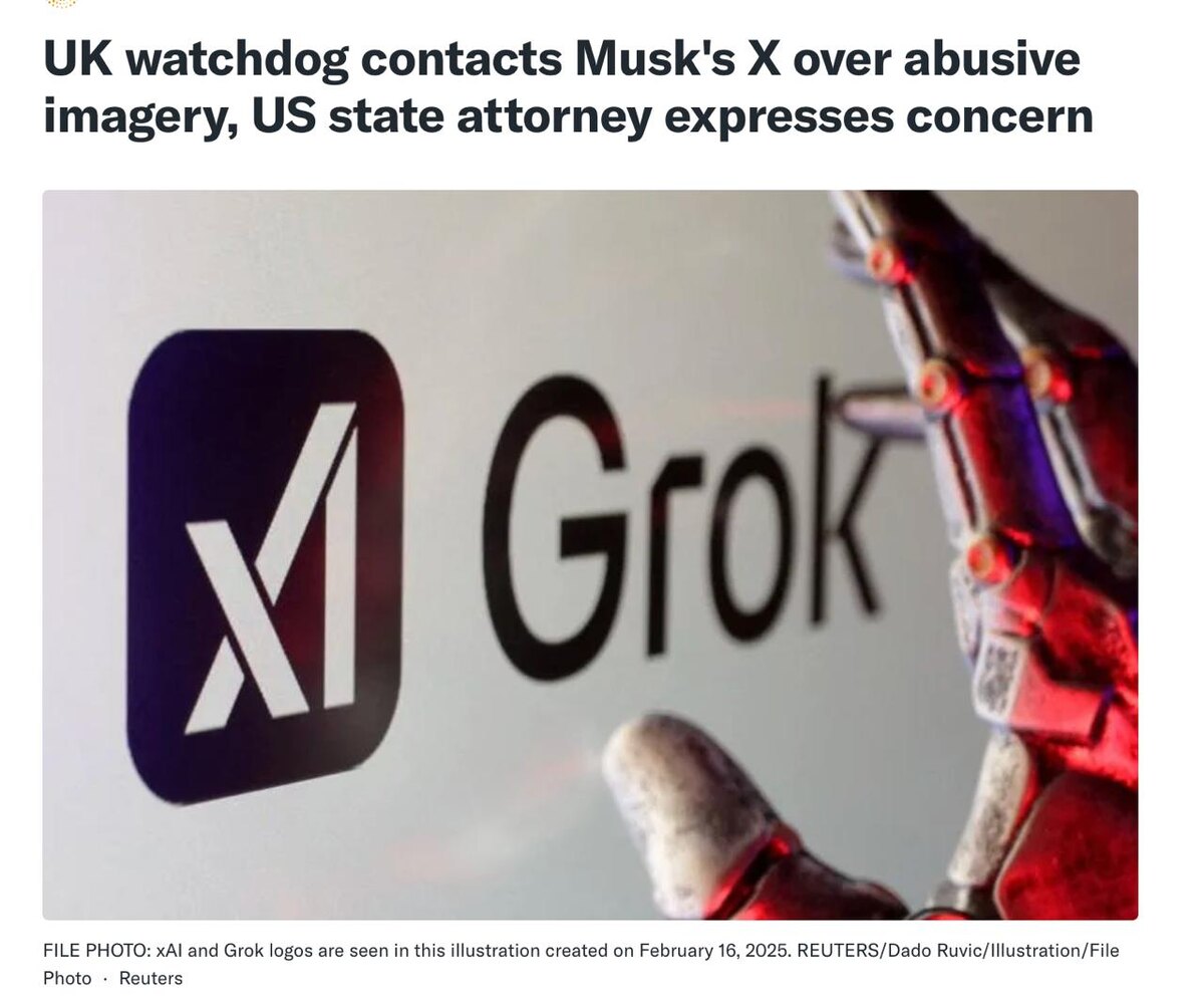 У премьер-министра Кира Стармера началась тряска. Он потребовал провести проверку Grok на предмет создания незаконного контента. В сети оказались провокационные сгенерированные изображения. Туманная судьба социальной сети на Туманном Альбионе. Ну а что — британцы сами согласились с Online Safety Act. В итоге сейчас в Великобритании полиция арестовывает в среднем около 30 человек в день за посты в социальных сетях. В Европе идёт проталкивание ChatControl, и скоро будет то же самое. Это называется «безопасность» по-европейски. Кстати, уже сейчас функцию ограничили. Оставили только для платных подписчиков, чтобы их можно было идентифицировать. Но на самом деле Кир Стармер просто обиделся на свои фото в бикини и клоунском парике. @lobushkin