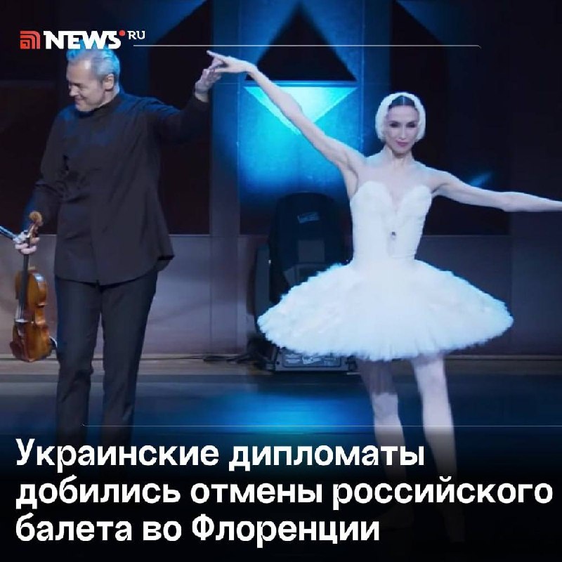 Прима-балерина Большого театра Светлана Захарова должна была выступить вместе с российским маэстро Вадимом Репиным на сцене Музыкального театра Маджо с авторским балетом Pas de deux for toes and fingers 20 и 21 января. Теперь итальянские зрители его не увидят. Под давлением украинских дипломатов балет убрали из программы театра на фоне якобы существующей «международной напряженности, создающей атмосферу, не способствующую успеху спектакля». «Можно лишь "поздравить" Италию и колыбель Возрождения Флоренцию с очередным "достижением", а точнее — дальнейшим погружением в мутные воды русофобии», — прокомментировали ситуацию в МИД РФ. ⭕️ Подписаться | Мы в MAX | Буст