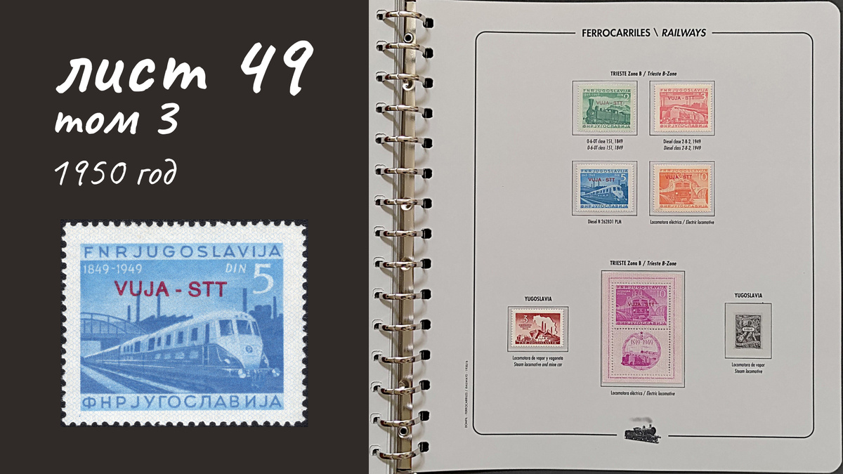1. Триест Зона В, 1950 год, № 31. Паровоз 1849 г. 100 лет железной дороге на территории Югославии.