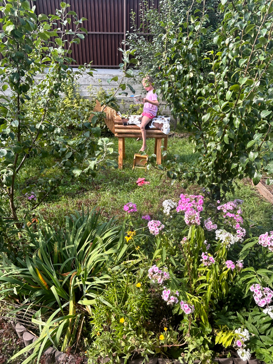 Опыта серьезного садоводства у меня нет, в Казани на нашем участке ращу что попроще: яблони, груши, вишню, смородину, малину, ежевику, шиповник, жимолость, клубнику, зелень, в теплице – помидоры и огурцы, ну и в клумбах цветы-многолетники (розы, гортензии, клематисы, лилии, ирисы, флоксы, гвоздики, тюльпаны, нарциссы и пр.), а также есть ель, туи, сосны. Урожай средний, не шикарный, конечно, как у моей мамы, но нам норм.