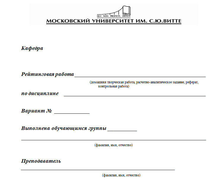 - Полное наименование вуза и кафедры;